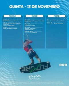 O litoral de Acaraú se movimenta com a segunda edição do Festival Viva Arpoeiras (@vivaarpoeiras), que acontece de 13 a 16 de novembro, na Praia de Arpoeiras. O evento se consolida como um encontro de turismo esportivo, cultura e economia criativa do litoral cearense, reunindo competições como Kitesurf, Beach Tennis, Stand Up Paddle, TT Race, downwind, caiaque e a Corrida Viva Arpoeiras, além de oficinas, shows e experiências que valorizam a identidade local e o desenvolvimento sustentável.