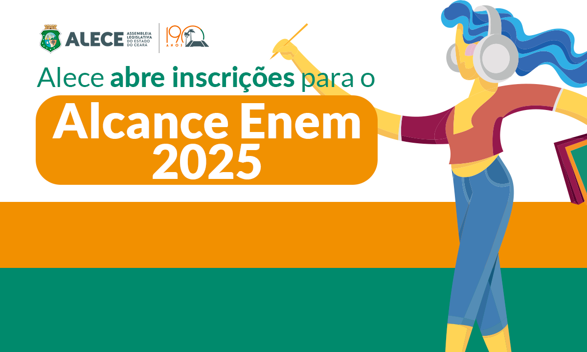 A Assembleia Legislativa do Estado do Ceará (Alece) abre inscrições para Alcance Enem, curso preparatório para o Enem e vestibulares, no período de 9 a 16 de agosto. A ação socioeducacional da Alece oferece aulas gratuitas e presenciais para estudantes que desejam se preparar para o Exame Nacional do Ensino Médio (Enem) e outros vestibulares. As aulas acontecem aos sábados, das 8h às 12h15, no bairro Dionísio Torres, em Fortaleza, e contam com transmissão ao vivo pelas redes sociais do programa.