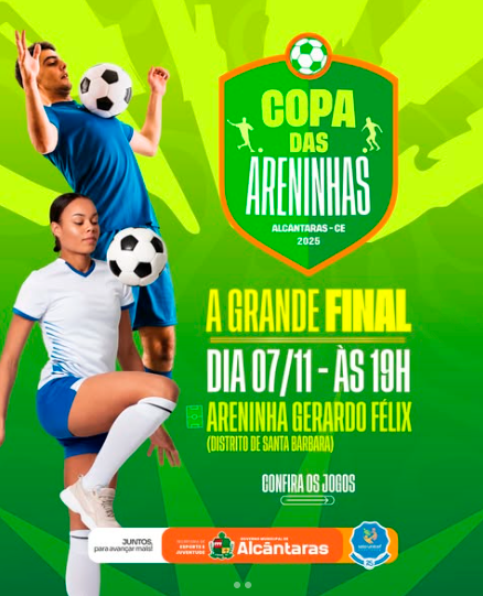 O Governo Municipal de Alcântaras, por meio da Secretaria de Esportes e Juventude, tem a honra de convidar toda a população alcantarense para prestigiar a GRANDE FINAL DA COPA DAS ARENINHAS DE ALCÂNTARAS! 🔥