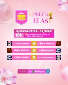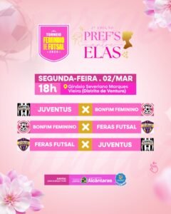 O Governo Municipal de Alcântaras, por meio da Secretaria de Esportes e Juventude, convida toda a população para prestigiar o Torneio Feminino de Futsal 2026.