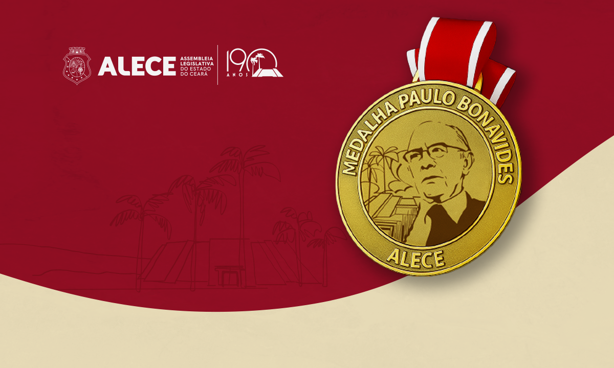 A Assembleia Legislativa do Estado do Ceará (Alece) realiza, na próxima segunda-feira (11/08), às 18h, no Auditório João Frederico Ferreira Gomes, localizado no Edifício Deputado José Euclides Ferreira Gomes (anexo II da Alece), sessão solene de entrega da Medalha Paulo Bonavides, instituída para homenagear personalidades do meio jurídico que se destacam na defesa da justiça, do estado democrático de direito e no fortalecimento das instituições brasileiras.