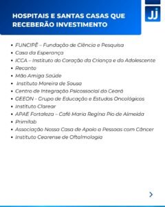 Em Fortaleza, instituições como o Instituto Primeira Infância (IPREDE) e o SOPAI receberam cerca de R$ 500 mil e R$ 300 mil de insumos, respectivamente. Já a Santa Casa da Misericórdia de Fortaleza recebeu um total de R$ 429 mil.