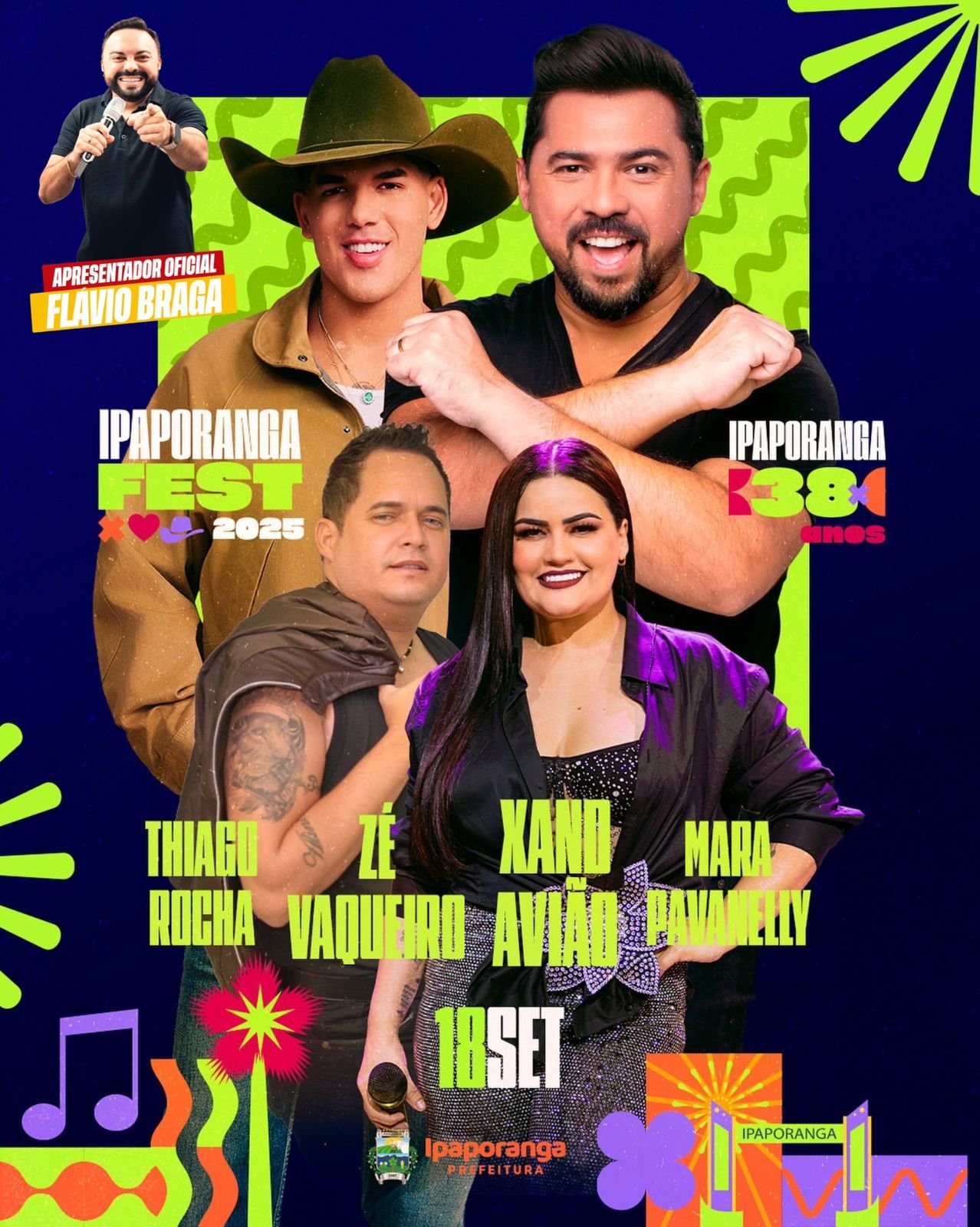 A Prefeitura de Ipaporanga, sob a gestão do prefeito Amaro Pereira, realiza nesta quinta-feira (18/09) o Ipaporanga Fest 2025, dentro da programação dos 38 anos de emancipação política do município.