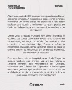 Previous post Gestão Alex Nunes garante 30 mil metros de asfalto e marca novo avanço na infraestrutura de Tianguá Next post Forquilha realiza cerimônia de premiação das Olimpíadas Escolares e Formatura do Projeto JBV
