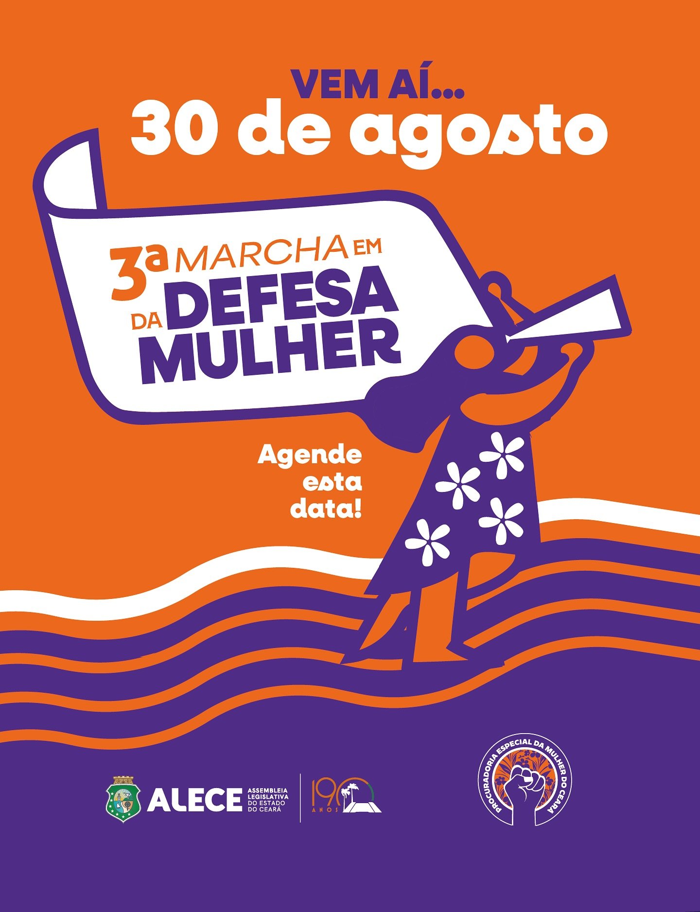 No dia 30 de agosto, a Procuradoria Especial da Mulher da Assembleia Legislativa do Ceará (ALECE) realizará a 3ª Marcha em Defesa da Mulher. A mobilização convida todas e todos a ocuparem as ruas em defesa da igualdade, do respeito e pelo fim da violência contra a mulher.