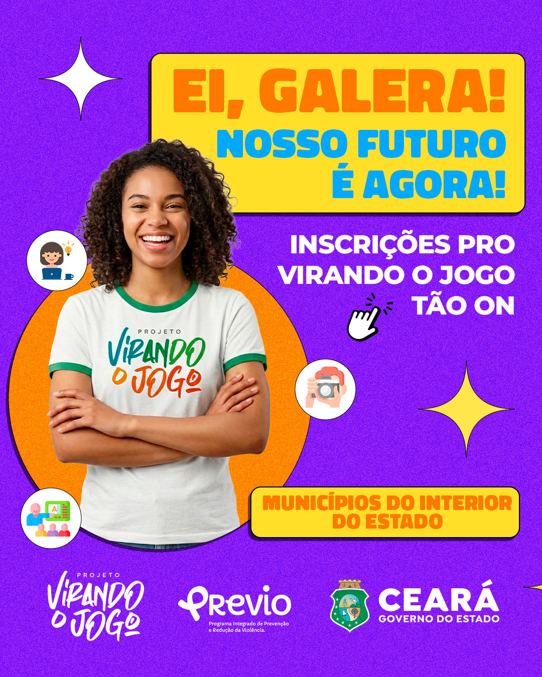 📌 O Virando o Jogo é um projeto do PreVio – Programa Integrado de Prevenção e Redução da Violência, do Governo do Ceará, que acredita na juventude como chave da transformação.