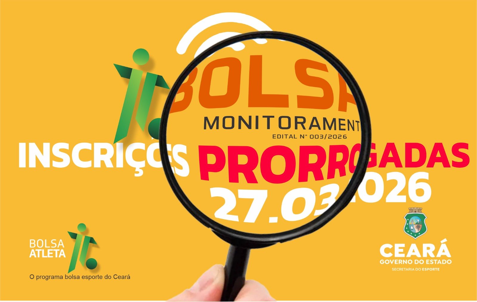 O Governo do Ceará, através da Secretaria do Esporte (Sesporte) prorrogou as inscrições do Edital N° 03/2026, que diz respeito ao processo seletivo do Programa Ceará Atleta – Projeto Bolsa Monitoramento, até o dia 27 de março.