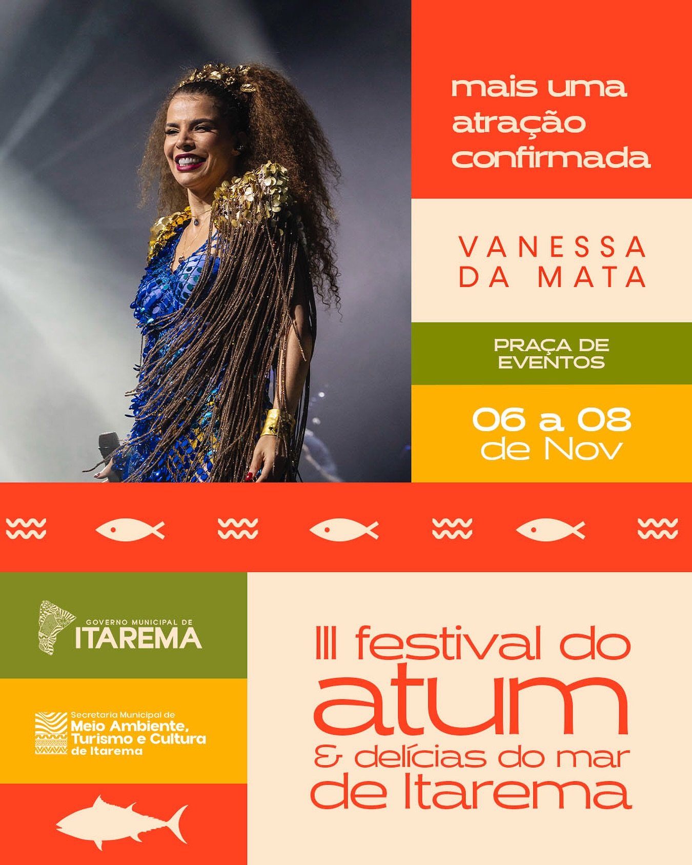 A Prefeitura de Itarema confirmou mais uma grande atração para o Festival do Atum e Delícias do Mar: a cantora Vanessa da Mata, uma das vozes mais marcantes da música brasileira. O anúncio reforça a proposta do evento de unir cultura, gastronomia e grandes apresentações em um só lugar.